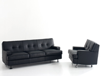 Design: Burkhard Vogtherr 1985 . Extremely elegant seating collection made in sofa and armchairs version to create beautiful seating area especially for contract projects such as office seating areas, lobbies, offices wating rooms or meeting rooms. It features a metal structure with moulding polyurethane foam and spring elastic straps. Differentiated density foam cushions. Available in leather or fabric.