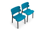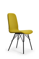 A sleek upholstered dining room chair with an interesting base design. Have the option to buy the base in solid beech wood in different finishes or powder coated steel in different colors. The seat and back can be made of a whole curved plywood plank or upholstered in fabric, faux leather or real leather. The metal base can be made in white,gray,moka or cyan color. this chair with a curved solid beech wood or upholstered in fabric or leather.