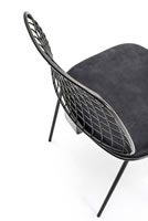 A sporty chair, a modern fun look to decorate any home or public area, a design resembling a tennis raquet and ball, with the rounded seat structure and the metal back. Structrue made of chromed steel or treated with powder paint. Structure finished colors: chrome, white, gray, cyan, moka Upholstered seat cushion covered with fabric or leather.