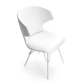 Modern dining chair with a curved back and a powder coated painted steel frame. Solid beech structure and curved plywood covered with leather, fabric or faux leather. Base can be painted white, dark brown, gray or cyan. Base also available in wood in different finishes