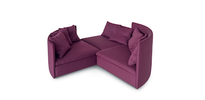 Sinuous design for this lovely modern sofa with curvy and seductive lines expressed in the arms and back. This collection include two types of armchairs and end elements to create large sofa layouts. Wood structure covered with non deformable polyurethane foam at different densities. Wood ro nickel chrome feet. Available in fabric or leather materials.