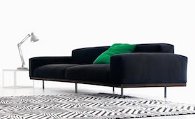 A beautiful modern sofa available in standard two or three seats or in sectional compositions. The refined armrests give a more detailed touch to the hole composition. This sofa is available in many different fabric options, leather and other materials. Compositions can be made with no back elements, chaise lounges and ottomans.