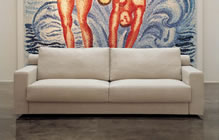 A lovely modern sofa beds with rounded lines and smooth edges, where its design can be appreciated from every angle, even from the side. Comfortable wide seating space. Available in different sizes with queen size beds and smaller. Easy to open one touch operation with large beech wood slats bed frame and a tall polyurethane foam mattress which reaches 7.5" in height. This collection includes also the armchair which can be converted in single size bed.