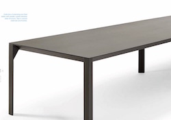 Simple design for this Italian dining table with powder coated stainless steel structure in moka, white, gray or silk gray color and tops in different materials such as hpl in different colors, painted aluminum sheet or oak veneered aluminum in different colors. Available in a fix or extendible version. It can be also used in beach houses or indoor.