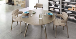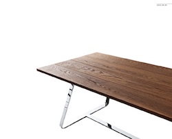 Design: Calvi & Brambilla. Very simple design for this lovely modern dining room table which can make a difference in any dining area. The structure is made of a flat drawn steel base cataphoresis treated and powder coated, in the colors moka, white, gray or silk gray, or bright chrome finish. The top can be made of flamed brushed oak in different colors or matt thermo treated ash wood in natural color.