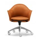 Designer office armchair, swivel or fixed mechanism, with an elegant and minimalistic design; sleek and practical. Die cast aluminum base, drawn aluminum structure. Covering in soft full grain leather available in thirty different colors or fire retardant mesh available in black, gray or white color 100% polyester TreviraCS - flame retardant feature related to the fibre only - This modern office armchair is available with a fixed X base in bright aluminum or with a star base in bright aluminum on castors. Available also with gas operating height adjustment mechanism with or without tilt control.
