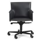 Italian furniture creativity and quality applied to office furniture. Limitless color combinations with more than 30 different shades. Superb stitching detailing. Modern office furniture with a twist. This modern office chair feature a high back and armrests, completely covered in hide leather. Steel frame in oval section metal seat pan covered with high tech fabric. Base can be made in bright chrome, liquid aluminum and semi bright black. The base castors can be replaced by appropriate sliding blocks. Gas seat height adjustment and tilt control mechanism (basic Syncro).