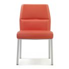 Office chair with chrome legs and a comfortable padding, featuring a cover made of luxury soft full grain leather. Inner steel frame, expanded polyurethane padding and more than 30 different leather colors to choose from! The same collection features armchairs, high back chairs, president chairs and chairs on castors or with swivel mechanism. Combine this comfortable chair with our modern office desks and conference tables. Italian quality office furniture, made in and imported from Italy
