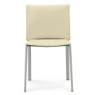 Simple design for this modern chair with leather covered seat and back and metal legs. Legs can be taken in the following finishes: liquid aluminum, semi bright black or glossy white. Leather is available in thirty different colors.